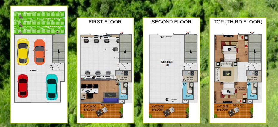 - these individual offices are also given the additional advantage of common green space on the rear side which provides refreshing views from the inside.
